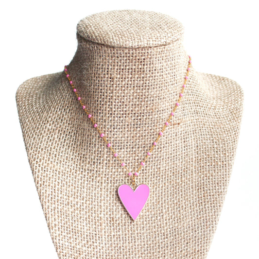 Beaded by Meg- Wild at Heart- Pink Enamel Dotted Necklace