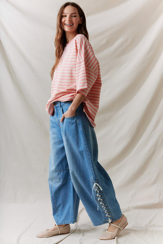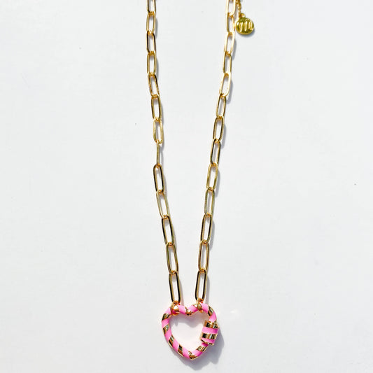 Beaded by Meg- Heartbreaker- Pink Striped Heart Carabiner Clasp Necklace