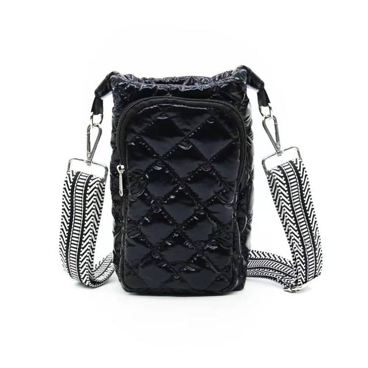 Black Water Bottle Bag Crossbody Hydro Puffer Tote