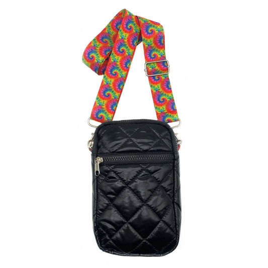 Black Tie Dye Puffer Messenger Cross Body Bag