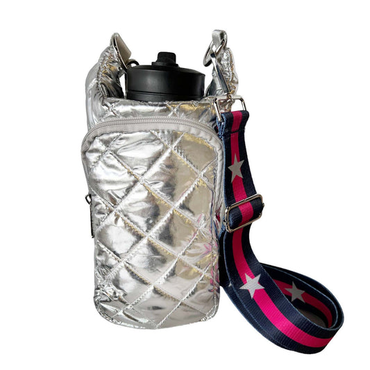 Silver Water Bottle Bag Crossbody Hydro Puffer Tote