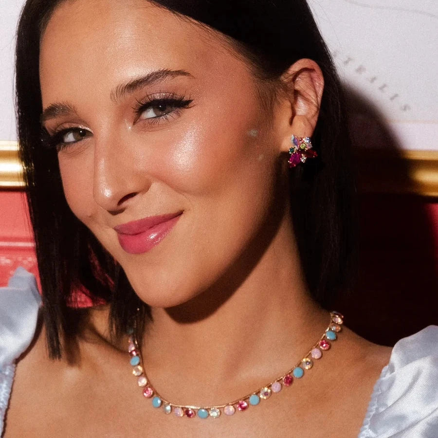 Her charm is her versatility & how effortlessly she will elevate even the most basic of necklines. Wear her with a band tee, a slip dress or a gown & she’s sure to turn heads with her vintage inspired gem settings and HAND-CUT Australian glass stones. Every stone is hand-cut and hand-placed to beautifully create the HCBH Rainbow Birthstone Necklace.