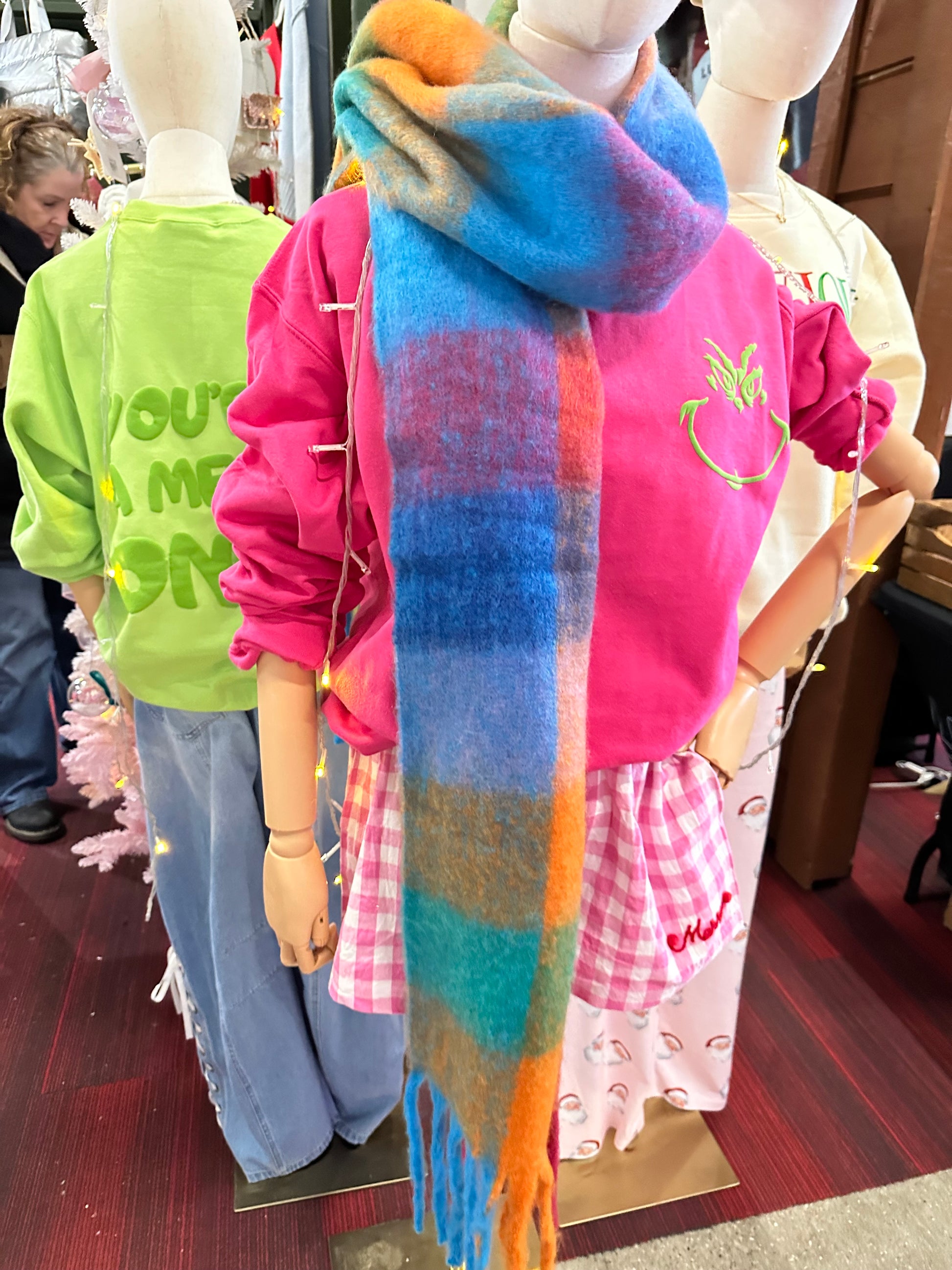 The Ella Blanket Scarf is back in a new colorway- Orange Dreamcicle Plaid! This best selling scarf is the perfect addition to your winter coat, providing a cozy pop of color while keeping you warm. Don't miss out on this stylish and comfortable accessory.